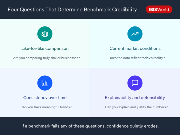 In practice, credible industry benchmarks tend to survive four questions. They’re rarely asked explicitly, but they shape whether a comparison is trusted or quietly worked around.