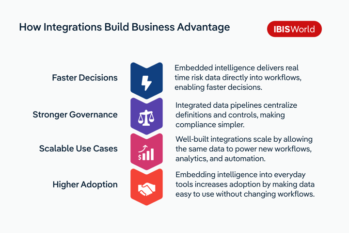 - Integration delivers the most value when industry intelligence flows directly into the systems where credit, strategy, and client decisions are made.