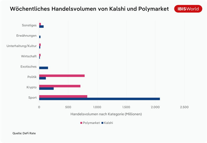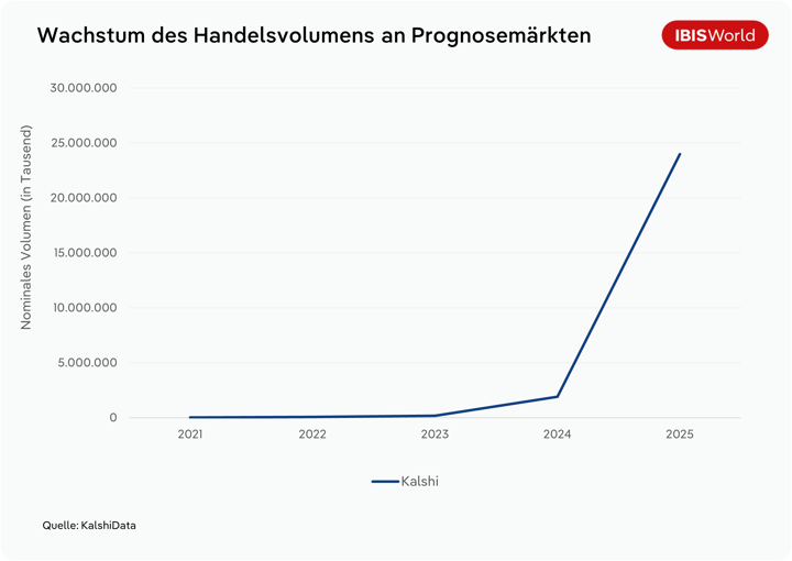 Das rasante Wachstum von Prognosemärkten hat diese von Nischenerscheinungen zu bedeutenden Handelsplätzen mit dauerhaft hohem Volumen in Politik, Makroökonomie, Sport und Sonderereignissen gemacht. So wurden laut Piper Sandler im Dezember 2025 auf Kalshi und Polymarket zusammen fast 12 Milliarden US‑Dollar gehandelt, ein Anstieg von über 400 % gegenüber dem Vorjahresmonat.