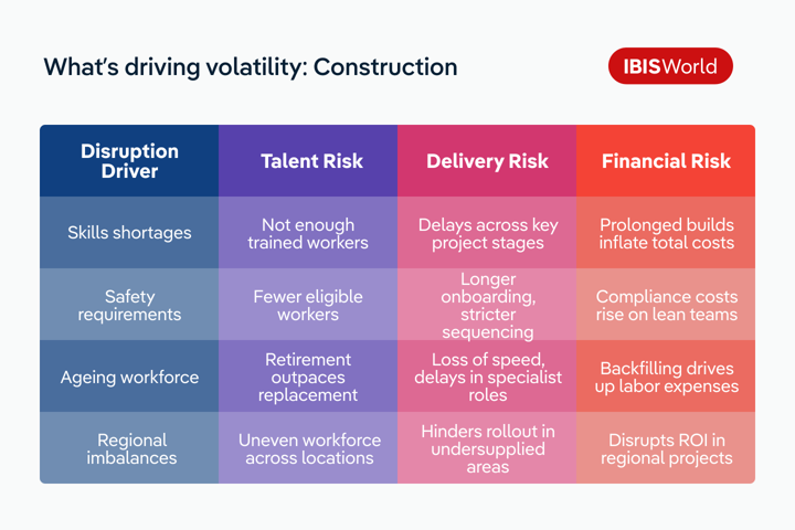 • In construction, project timelines and ROI are being reshaped by labor shortfalls, with staffing gaps now rivaling capital as a constraint on delivery.