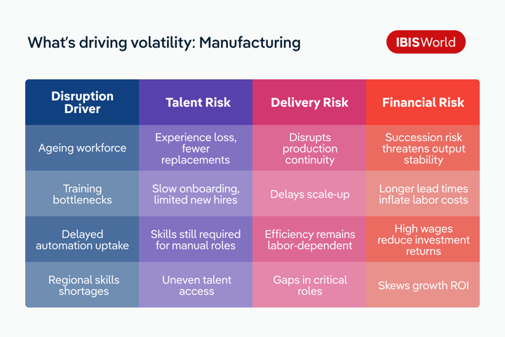 In some sectors, labor shortages have become a structural barrier to delivery. In manufacturing, healthcare and construction, persistent talent shortages are distorting project ROI and reshaping strategic priorities.