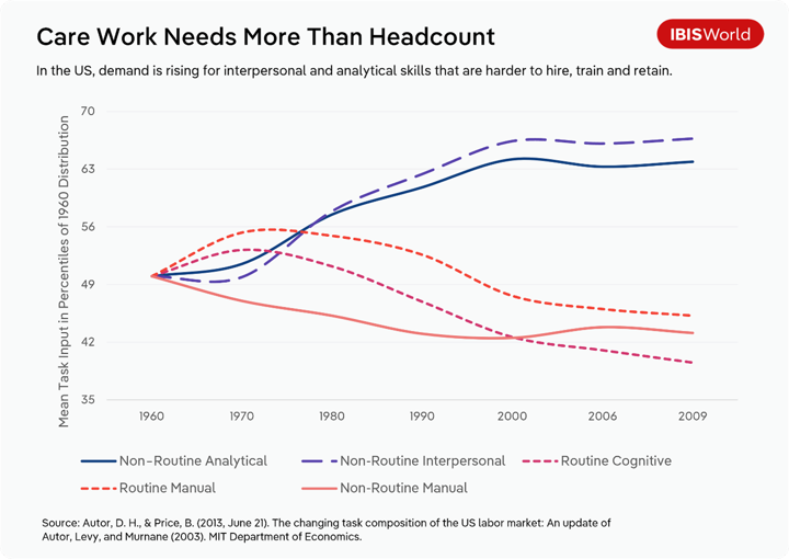 As patient complexity increases, interpersonal judgement, communication and analytical reasoning are becoming essential. These are hard to recruit for, slow to train and not easily replaced through overtime or wage increases.