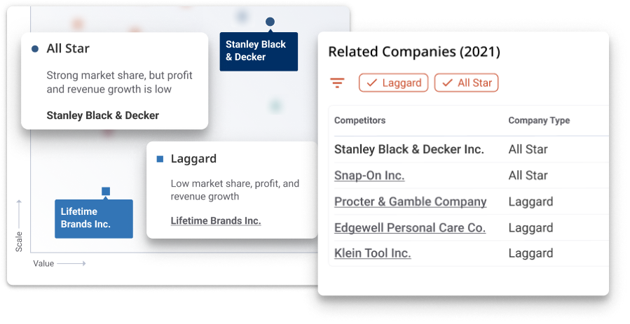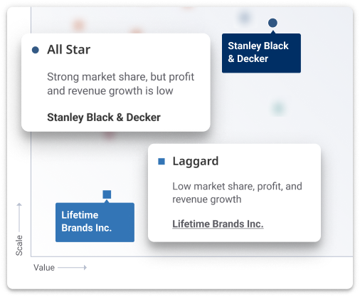 • Get a clearer picture of a company’s growth potential based on their product lines and where they fall short of competitors