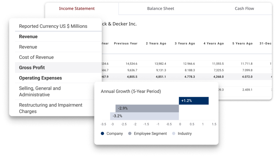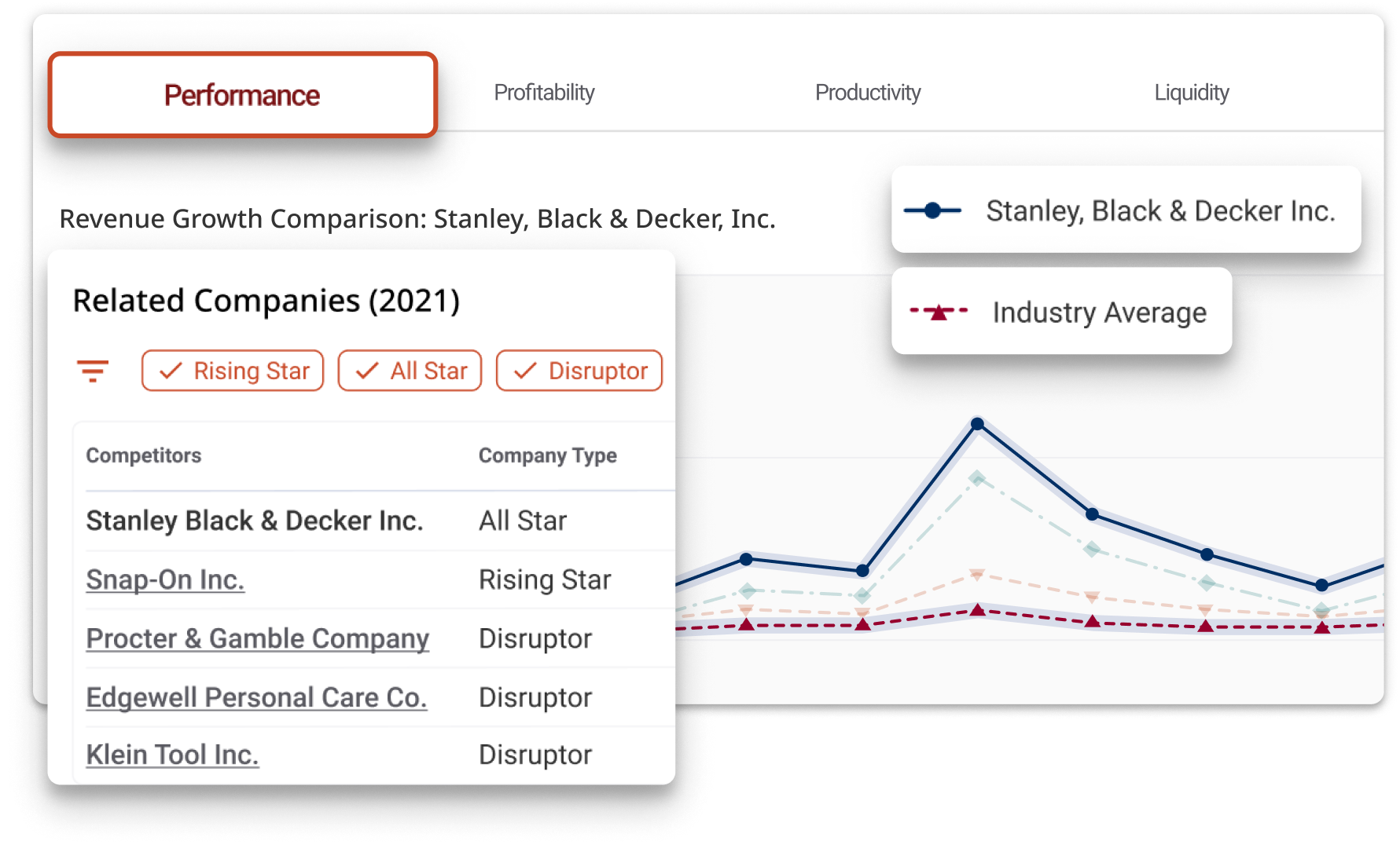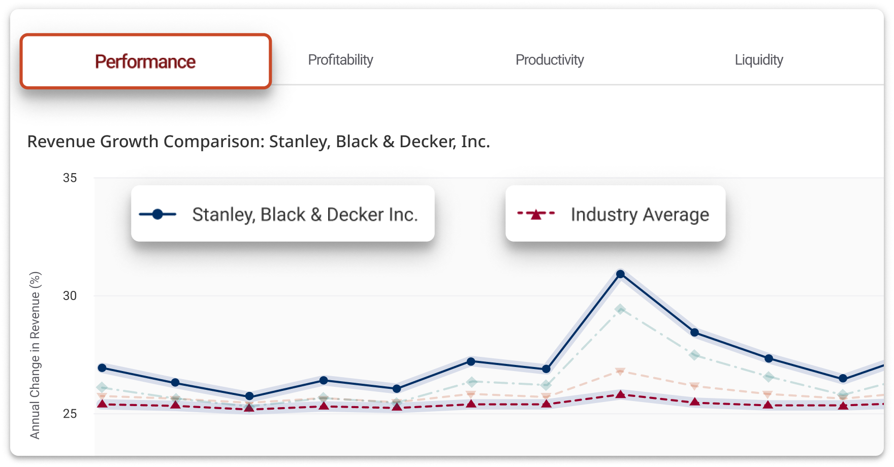 • Show your clients exactly how a company compares to its competitors and industry averages