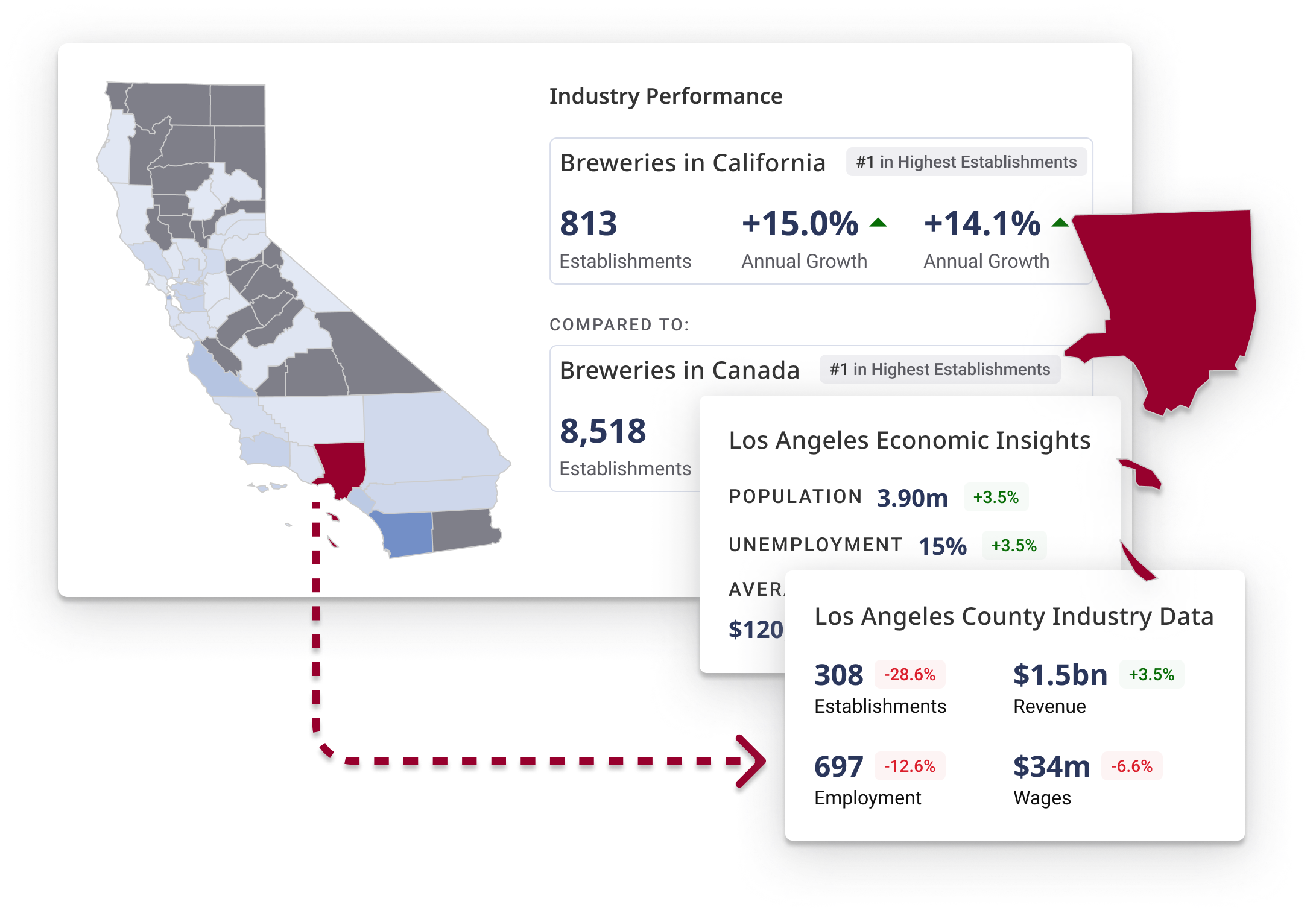 Detailed State Industry Reports examine local data and offer projections for revenue, employment and business growth across states. Use this hyper-relevant geographic data to: